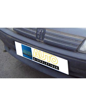 Cache plaque d'immatriculation format 520 x 115 mm réalisé en PVC expansé 3 mm d'épaisseur, livré avec 2 cavaliers afin de se fixer facilement sur la plaque d'immatriculation existante. personnalisation à vos couleurs d'après fichiers pros fournis. Les 10 cache plaques d'immatriculation personnalisés