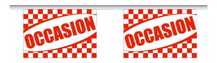 Apportez une touche dynamique et professionnelle à vos espaces d'exposition avec cette guirlande de 10 mètres composée de 24 fanions en maille polyester hautement résistante. Chaque fanion de 20 x 30 centimètres offre une surface généreuse pour une visibilité maximale.
